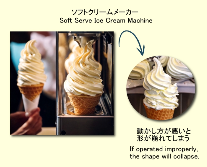 ถ้าทำความเร็วและปริมาณที่ครีมซอฟต์แวร์ออกมาจากเครื่องจักร (การขับไล่) อย่างสม่ำเสมอ ของข้าวโพดขยับ และ (การเคลื่อนไหว) ไม่มั่นคง และรูปร่างของครีมซอฟต์แวร์พังทลายแล้ว เครื่องพิมพ์ 3D อาหารเหมือนกันก็
