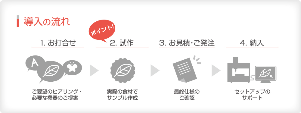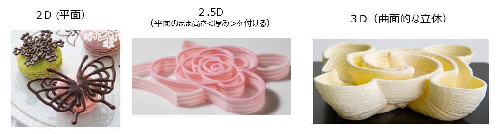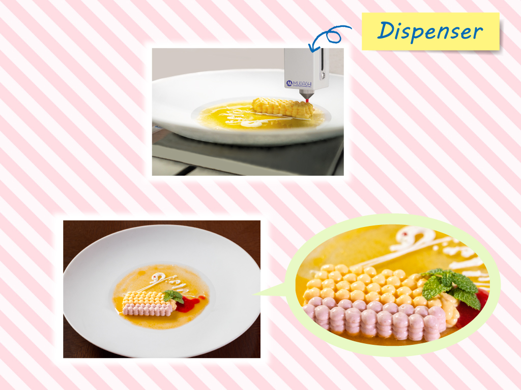 ที่บริษัทของเรา ประยุกต์ใช้เทคนิคที่เป็นแกนของเทคโนโลยี dispensing กับเครื่องพิมพ์ 3D อาหาร เพราะเทคนิคนี้ ทำให้เป็นจริงการหล่อขึ้นรูปของรูปแบบหลากหลายได้ด้วยเครื่องพิมพ์ 1 คันจากการจับสลากและการสร้างเครื่องประดับของ 2D ถึงการหล่อขึ้นรูป 3D ไม่เพียงแต่การใช้ให้เกิดประโยชน์ในฐานะเครื่องพิมพ์ 3D อาหารเท่านั้น คาดหวังการพัฒนาสินค้าที่ที่ปฏิรูปใหม่มากขึ้นได้ในการนำไปใช้ที่ความสามารถในการผลิตถูกหาไม่ใช่หรือ เพราะประกอบการหล่อขึ้นรูป 2D