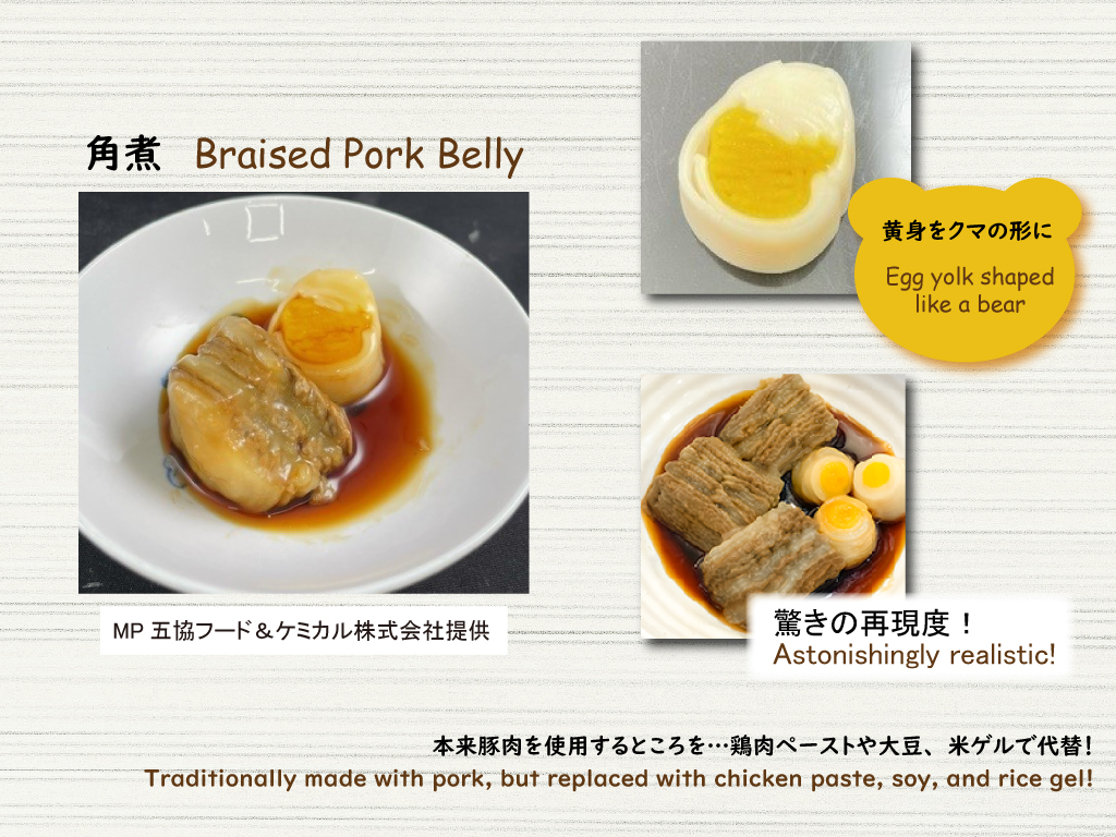 ถึงใช้เนื้อหมู แต่ใช้ถั่วเหลืองที่ที่มาจากวัสดุและพืชที่ทำให้เนื้อไก่เป็นรูปร่างกาวถึงฐานตัวเลข เพราะรองรับการควบคุมแคลอรี่และมะเร็ง Vee และสภาพร่างกายโดยกำเนิดข้อบัญญัติทางศาสนาความชอบปัจเจกเลือกวัตถุดิบปรุงอาหารประสานได้โดยปกติ ถึงเกี่ยวกับส่วนของเนื้อติดมัน ใช้สารเติมแต่ง (สารกลายเป็นเจล) ที่ให้เนื้อผ้าเนื้อติดมันเหมือน โดยไม่ใช้ไขมันครั้งนี้ แต่ใช้ประโยชน์จากวัสดุที่ที่มาจากธรรมชาติเช่นน้ำมันต้นมะพร้าวเป็นต้นคิดเกี่ยวกับด้วย